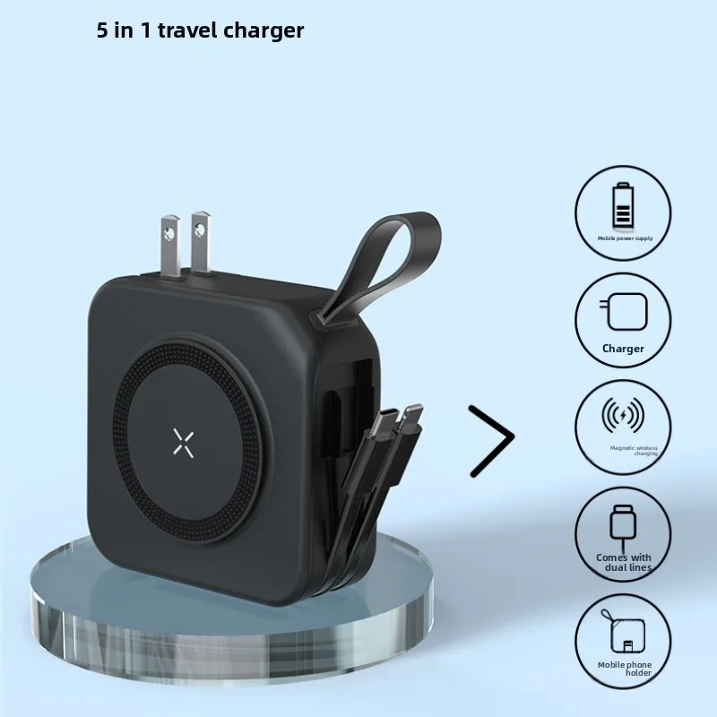 10000Mah Multifunctional Magnetic Wireless Power Bank 22.5W Fast Charging AC Wall Plug-in 5-in-1 Mobile Power Supply